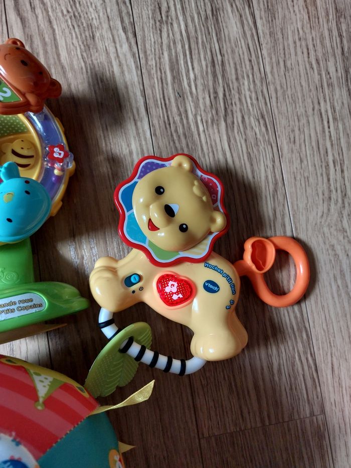 Je vends un lot de jouets bébé, 6/12 mois, en très bon état. Marque Vtech, ils fonctionnent tous.