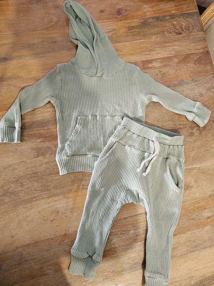 Ensemble très agréable à porte très bien pour les mi saisons. En très bon état couleur bleu vert