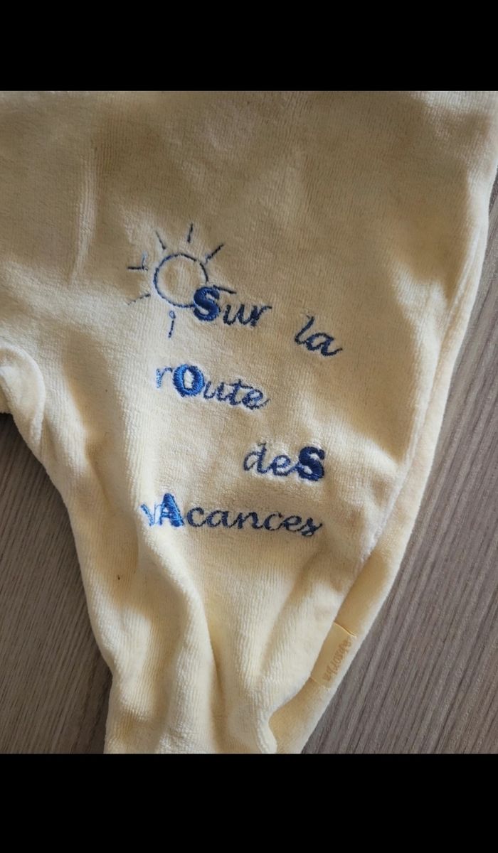 Pyjama "sur la route des vacances" Ouverture à l'arrière, pieds fermés, excellent état Contact pour plus d'informations/photos