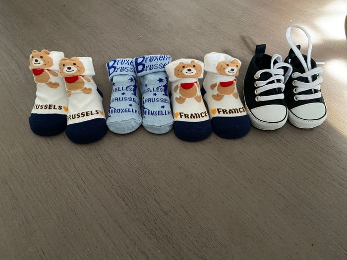 3 paires de chaussons et une paire de chaussures 0/3mois