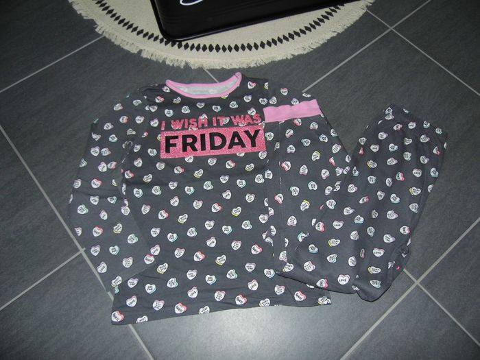 Bonjour 👋 Je vend ce : Pyjama fille " primark "👧 9.10ans 👉gris et rose motif cœur ❤️ Maison 🏠 non fumeur et sans animaux
