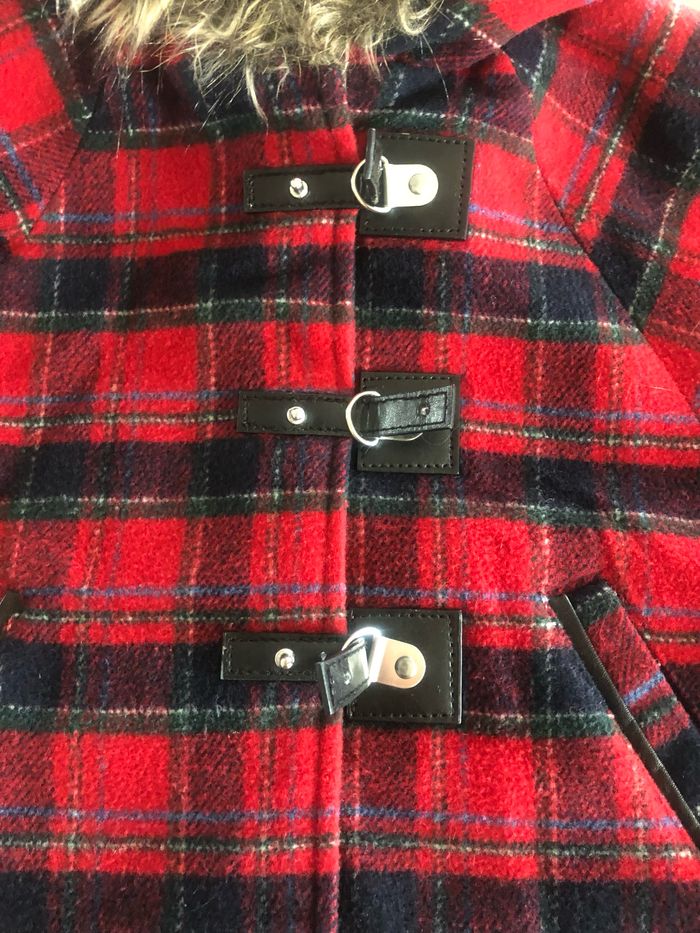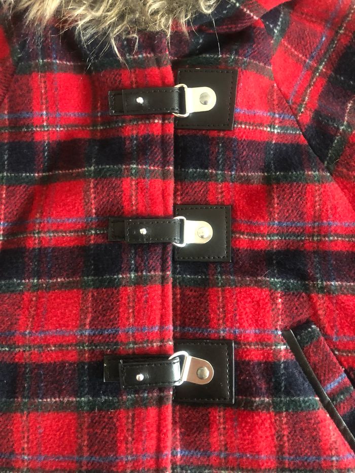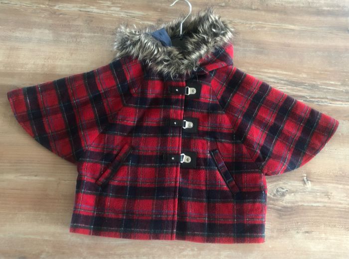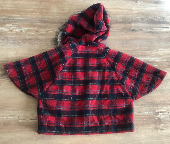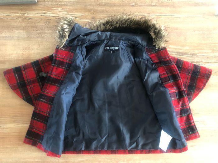 Petite cape tissu écossais avec sa capuche à (fausse) fourrure avec fermeture originale