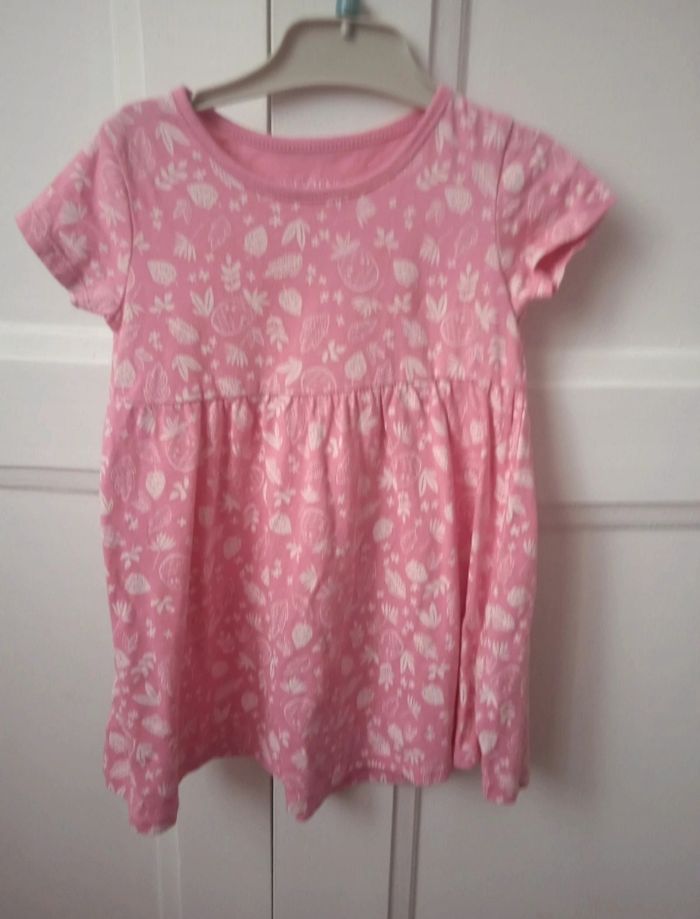 Robe tee shirt en coton rose imprimer dessin blanc en très bon état