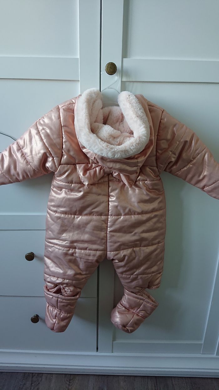 Combi-pilote rose gold bien chaude, de la marque Marese, en taille 6 mois (67cm). Joli noeud dans le dos. Remise en main propre possible sur Paris ou vitry-sur-seine
