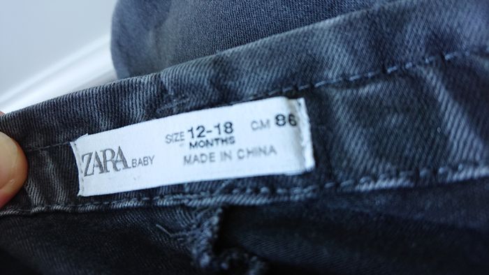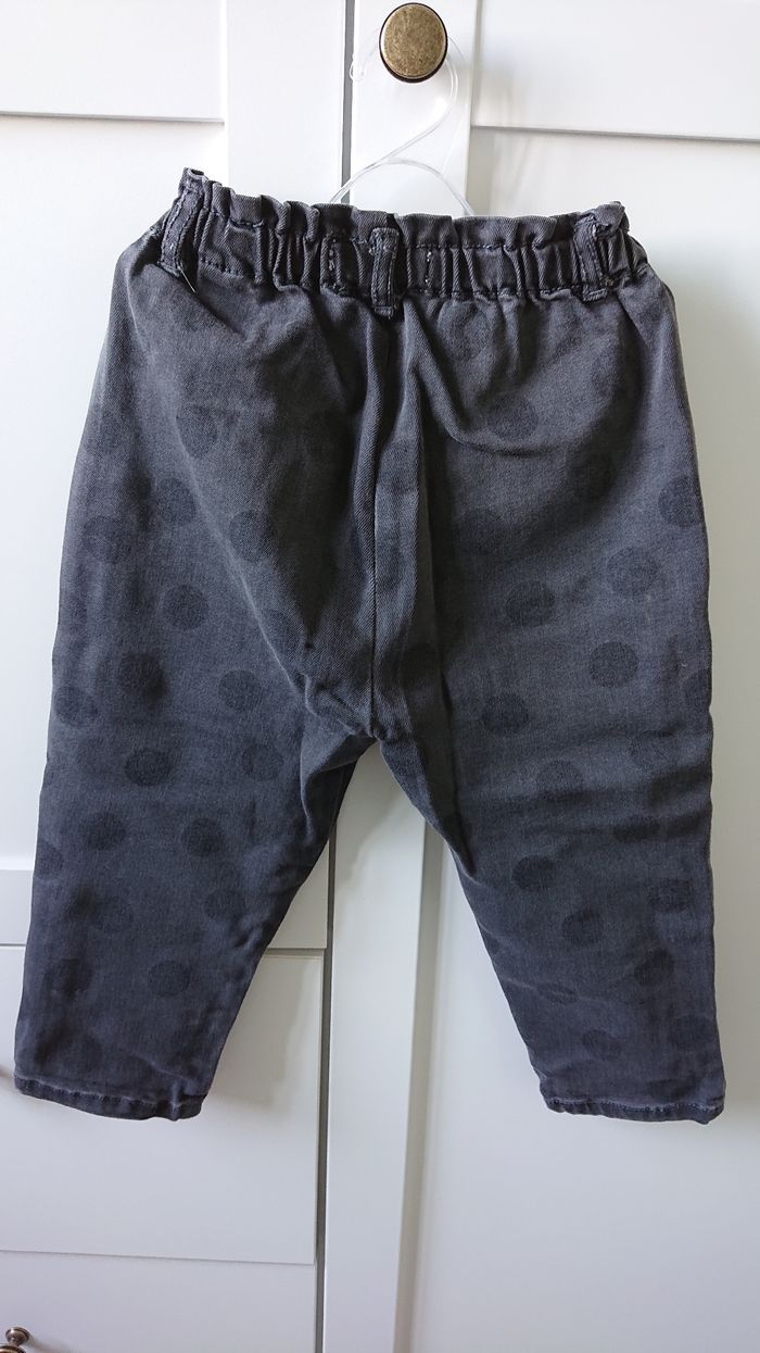 Jean gris à gros pois noirs de la marque Zara, en taille 12-18 mois (86cm). Trace de feutre noir, voir photo. Remise en main propre possible sur Paris ou vitry-sur-seine