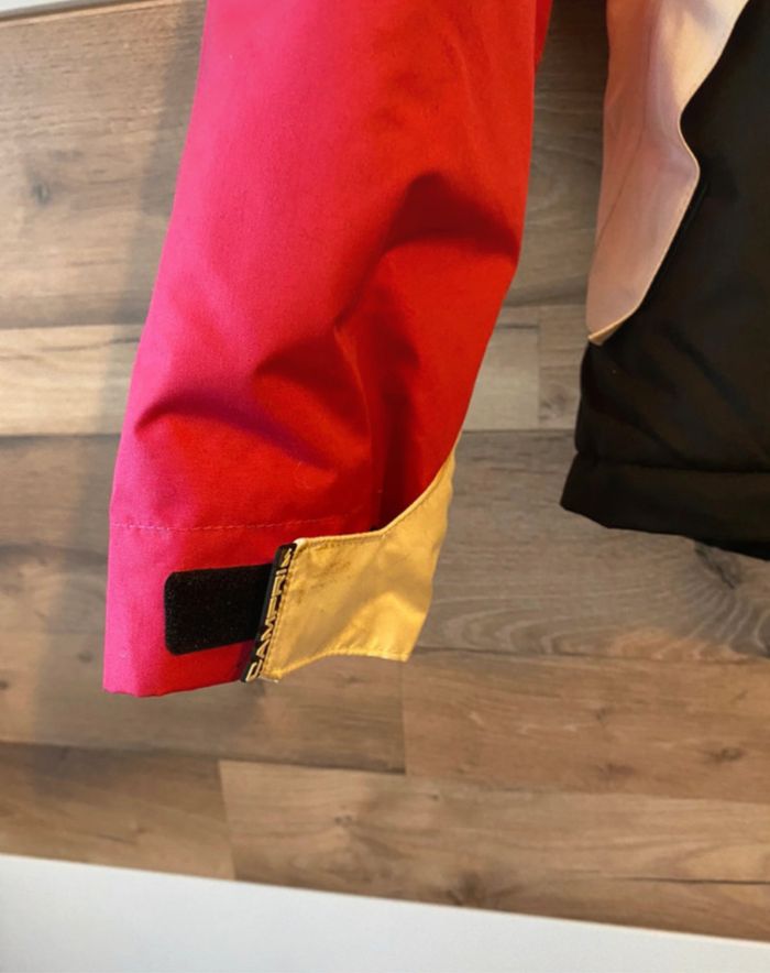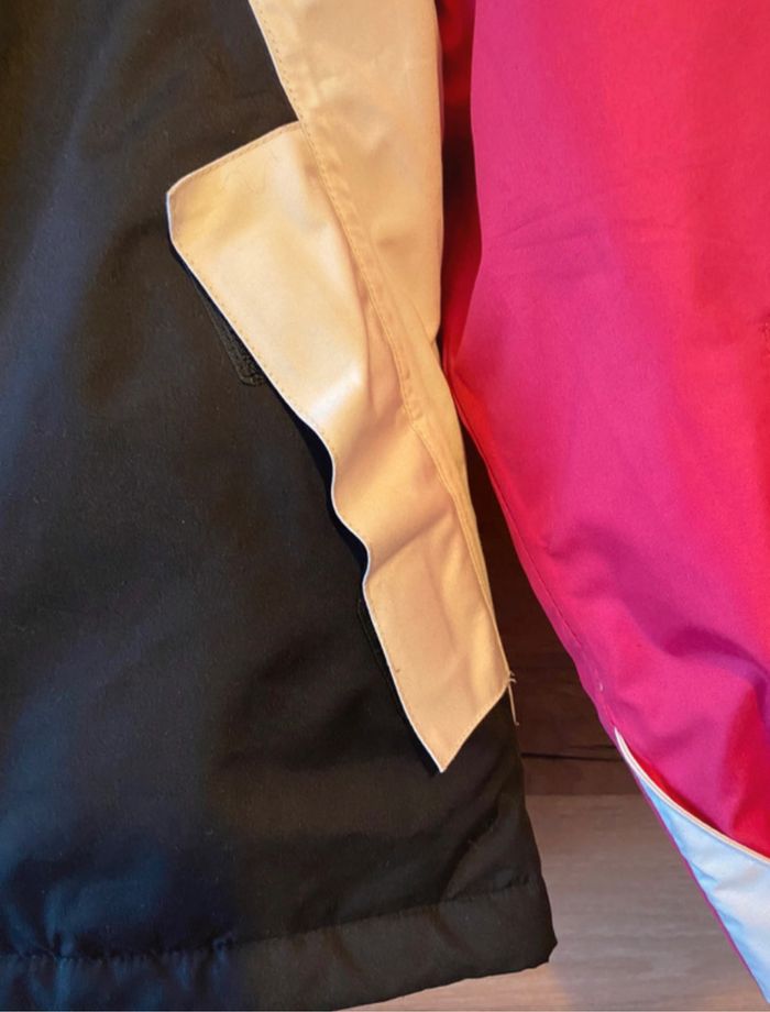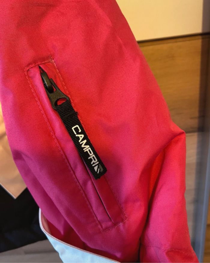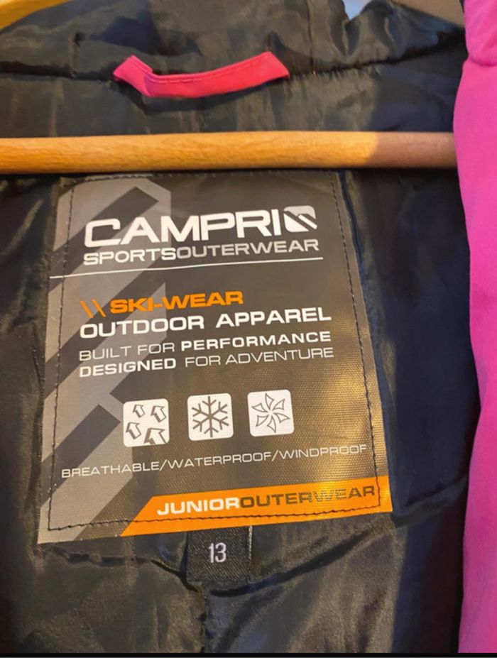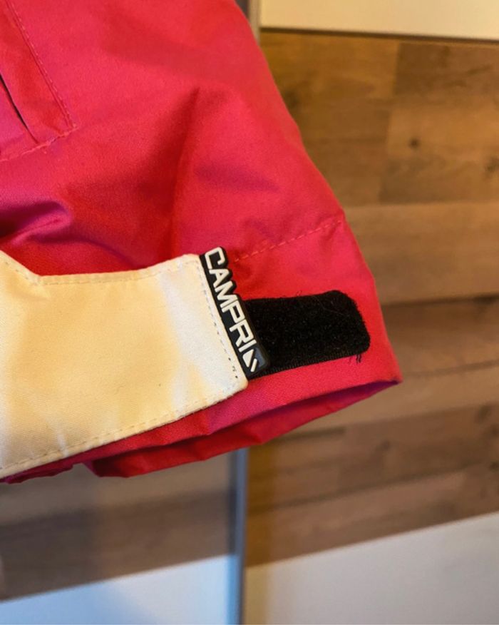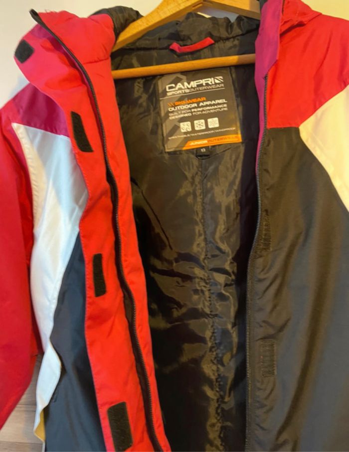 veste de ski ado fille taille 10-12ans rose,blanc et noire porté 5-10 fois maximum elle est epaisse et elle resiste a l eau de la marque campris petite tache a la manche voir photo 6 2 poches extérieur + une petite pochette a la manche gauche avec un zip