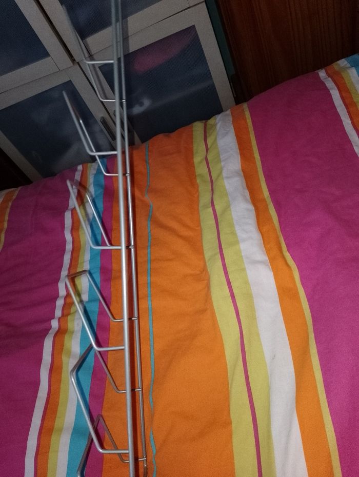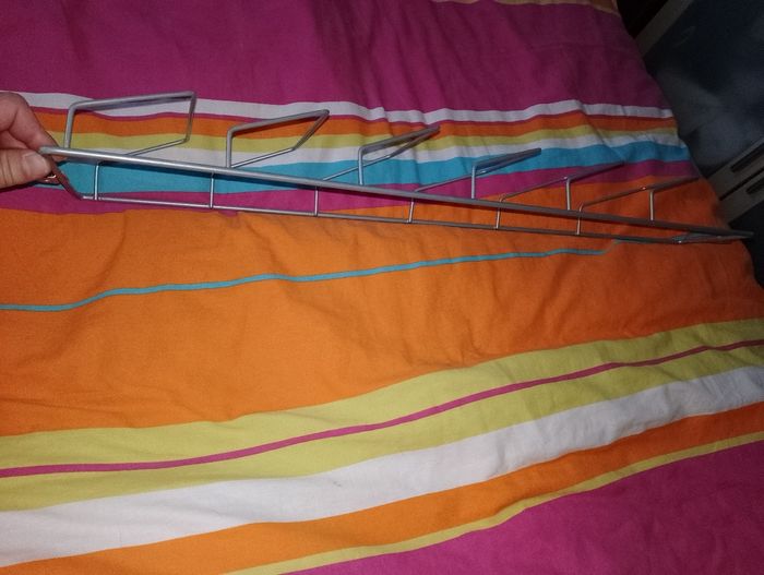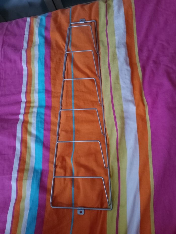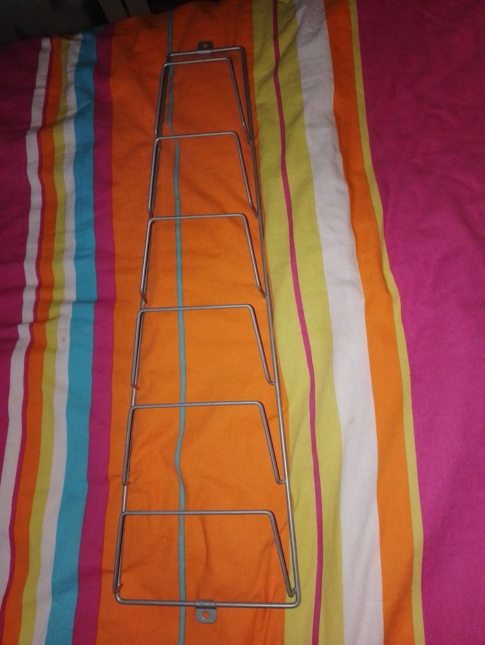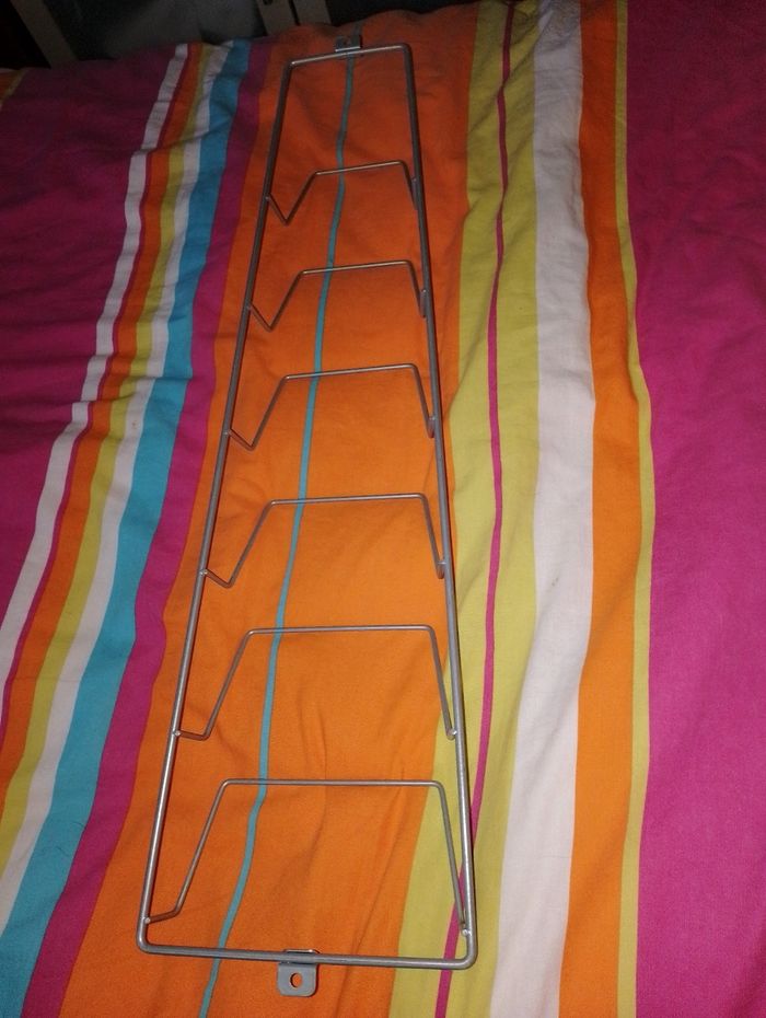 Rangement Ikea pour ranger couvercle casserole où magazines Dimensions : taille du bas 18cm Taille en haut 10 cm H.63 Épaisseur 6cm