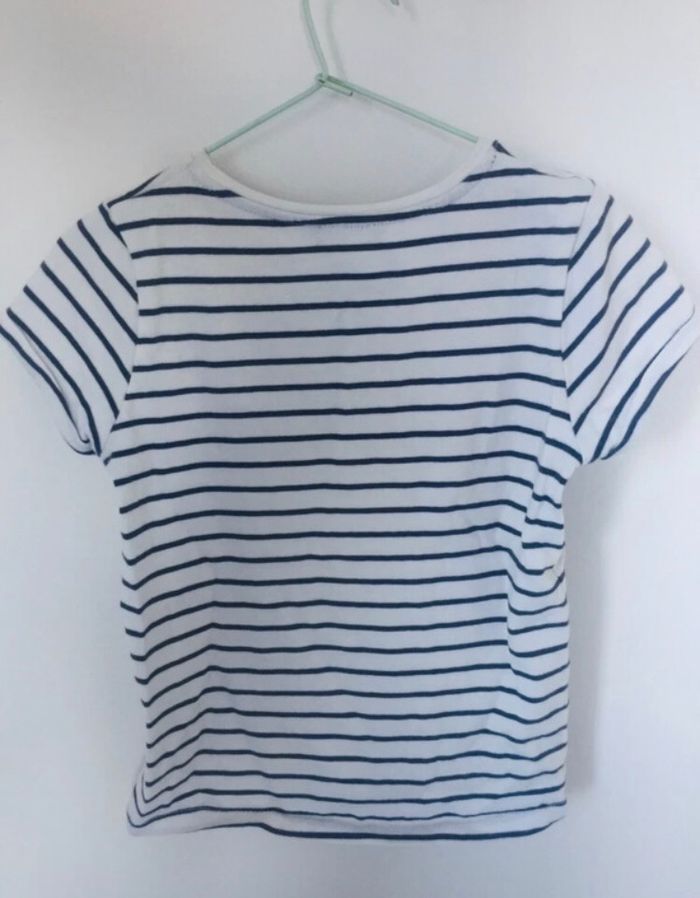 Achat aujourd’hui ? 👉🏻 Départ du 📦 demain ! t-shirt marinière chat en sequins jaune 8 ans / 128 cm blanc et bleu vêtement été - haut - plage - détente - mignon- kawai - cute - marque okaidi