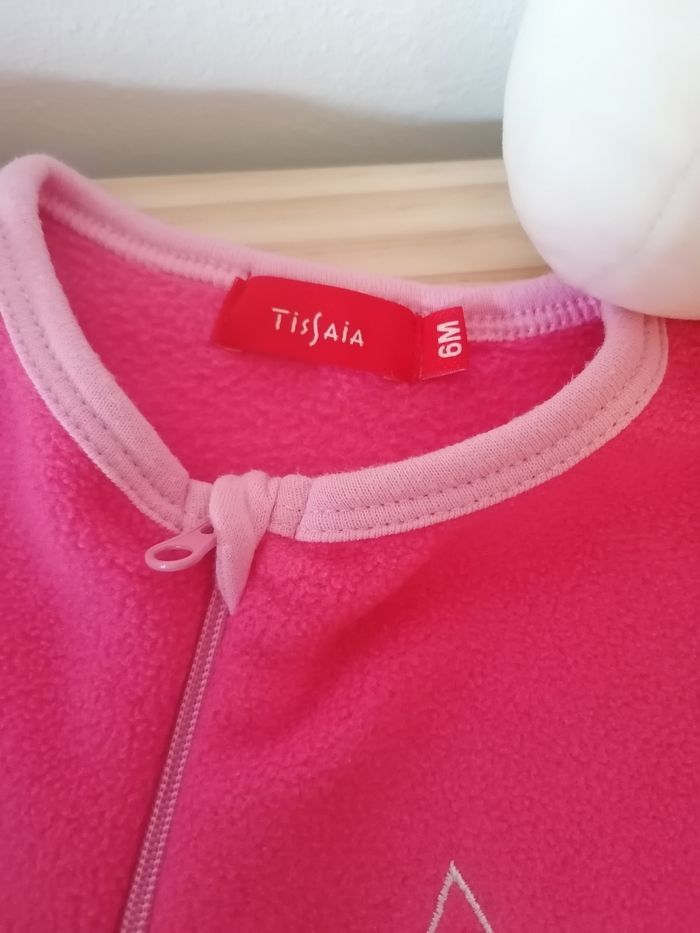 Lot de 2 pyjamas en 6 mois Le rayé se ferme par bouton pression à l'arrière Le rose zippé n'a jamais été porté