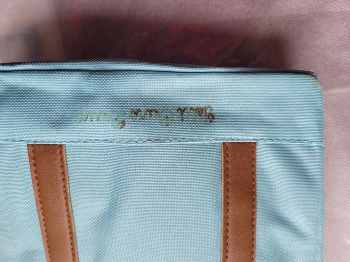 Sac à dos petit ours brun. Les dessins sont un peu abîmés par le temps.