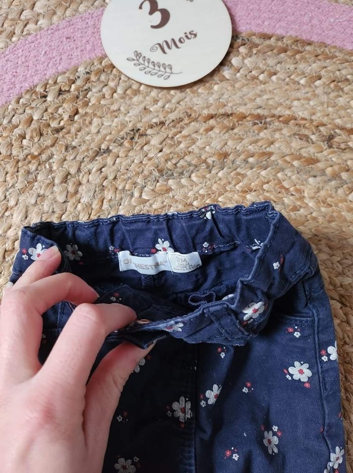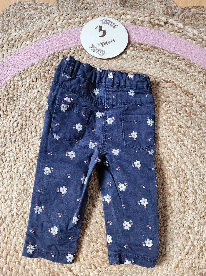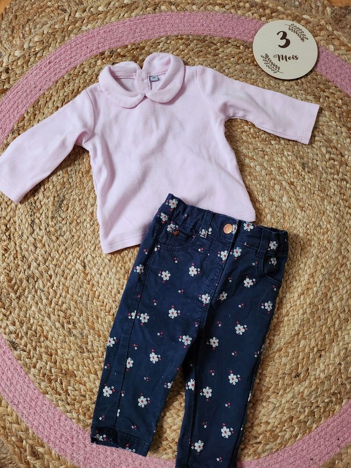 Ensemble 3 mois T-shirt rose pâle col Claudine Pantalon marine à fleurs 🌸 Orchestra Très bon état