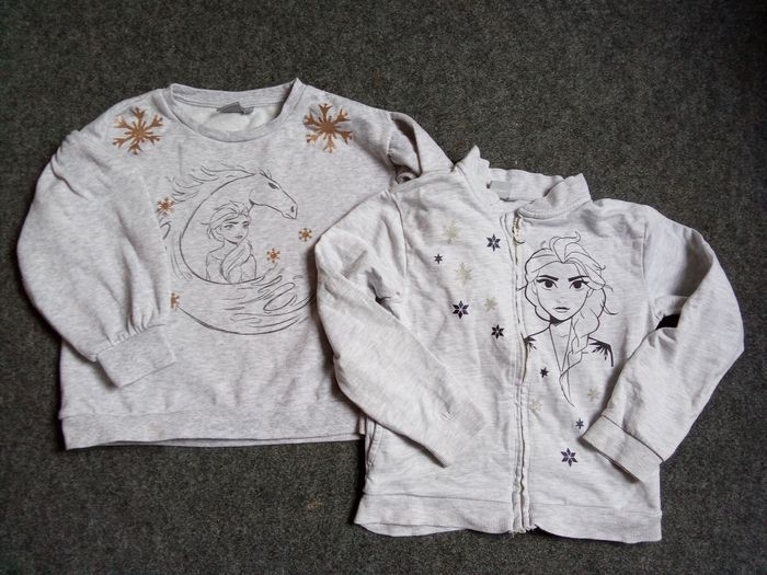 Lot 2 hauts fille reine des neige  5,6 ans, gilet, pull, disney, mi saison - photo numéro 1