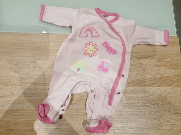 Pijama 1 mois 54cm ouverture sur l'avant et à l'entre jambe pour le change. Excellent état #1moisfillecin #1moisfille #1mois