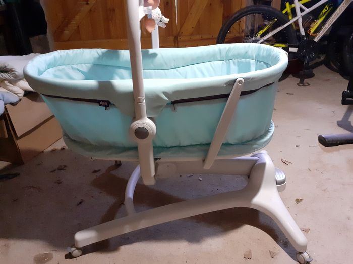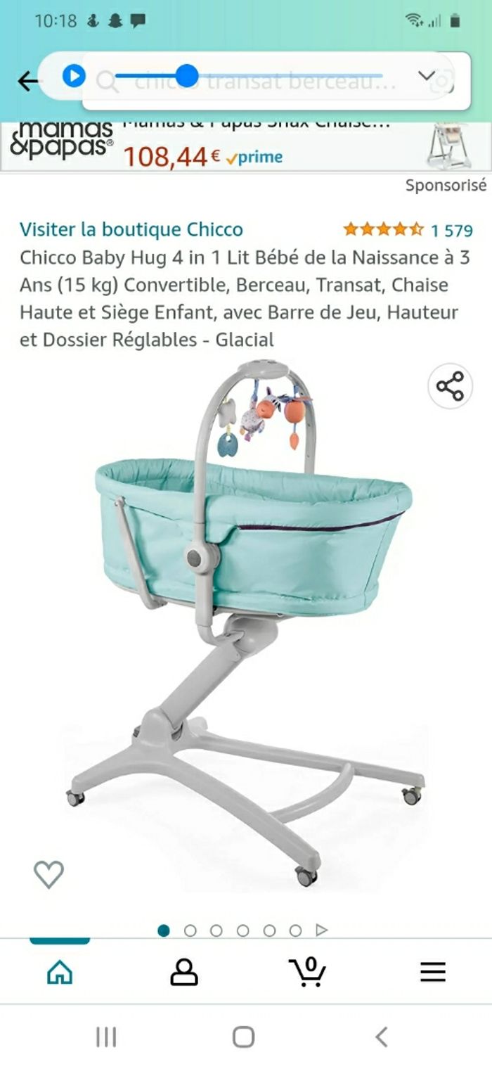 Lit chicco baby hug 4 , transformable en transat où chaise haute et siège enfant avec barre de jeu inclus . Hauteur et dossier réglable. Je donne avec le matelas qu'on à rajouter car l initial est trop fin pour y faire dormir bébé en permanence. Lit en très bon état utilisé 6 mois . Acheter neuf 240 euros sur Amazon . Pas d envoi pour cet article .