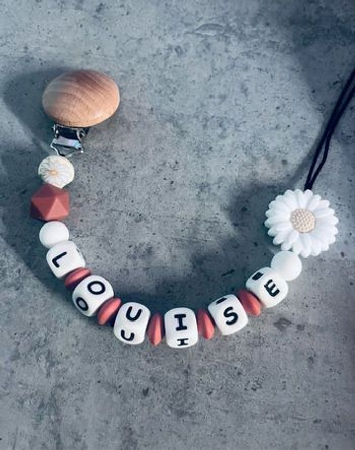 Si je ne répond pas n’hésitez pas à m’envoyer plusieurs fois des messages j’ai des problèmes avec l’application je reçois mal les messages , aimer ma publication ou ma page pour que je vous retrouve plus facilement merci beaucoup Attache tétine personnalisé en silicone ou en bois au souhait de l’acheteur . Personnalisable au choix de l’acheteur que ce soit la couleur comme le prénom ou le thème . Le fil est doublé pour plus de sécurité tout le long de l’attache tétine. N’hésitez pas à me demander et regarder mon dressing. Une photo vous sera envoyée avant l’expédition pour vous ayez un aperçu du rendu. Tous les produits sont réalisés avec du materiel spécial conçu aux bébés , enfants.