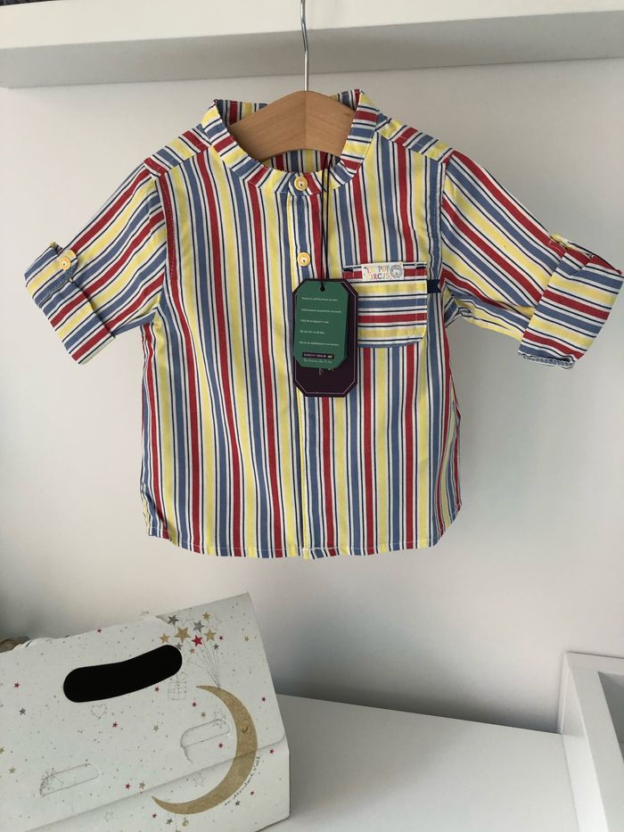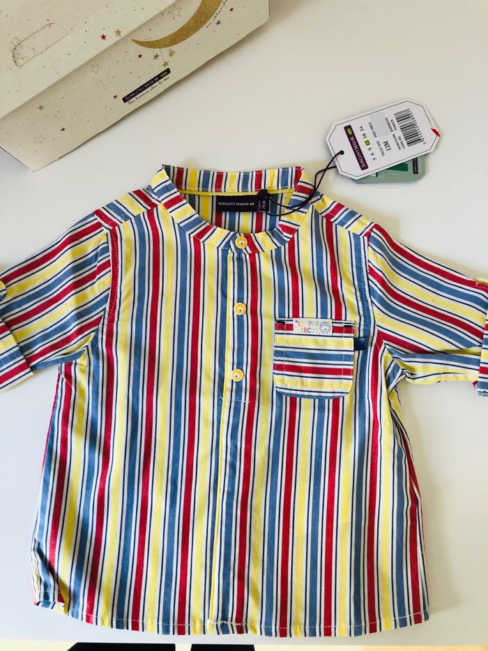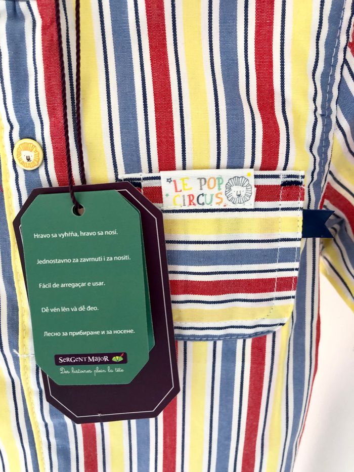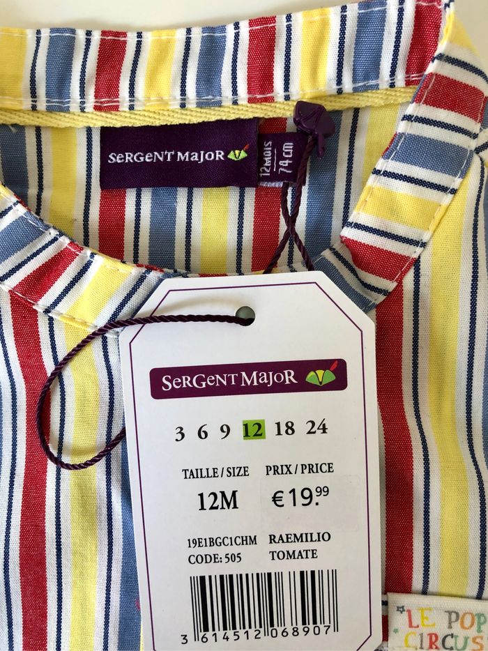 Adorable chemise collection cirque de chez Sergent Major, taille 12 mois. Article neuf avec étiquette. Prix d’achat 20€.