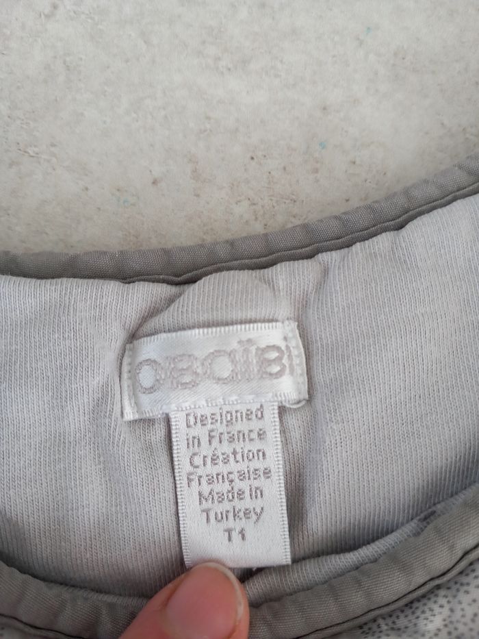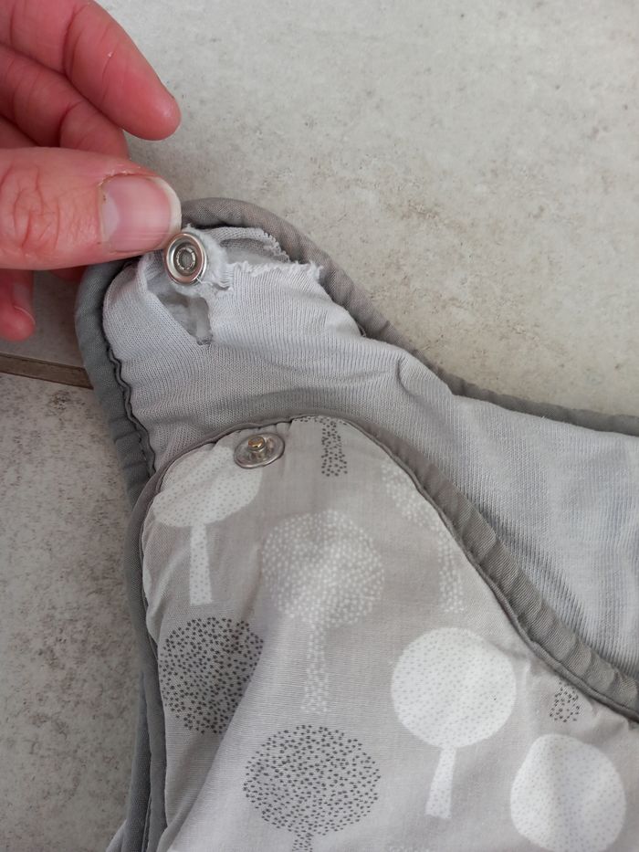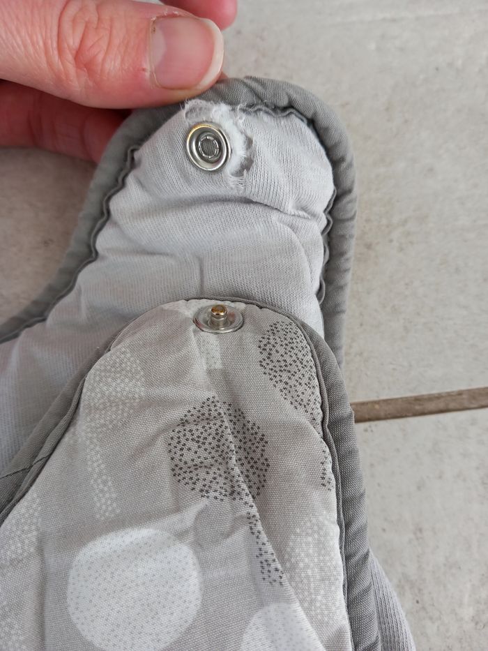 Grande gigoteuse grise chaude Fermeture sur le côté Pressions sur les épaules (elle sarrache, elle voir photos) Non réglable Taille 1 (6-24 mois)