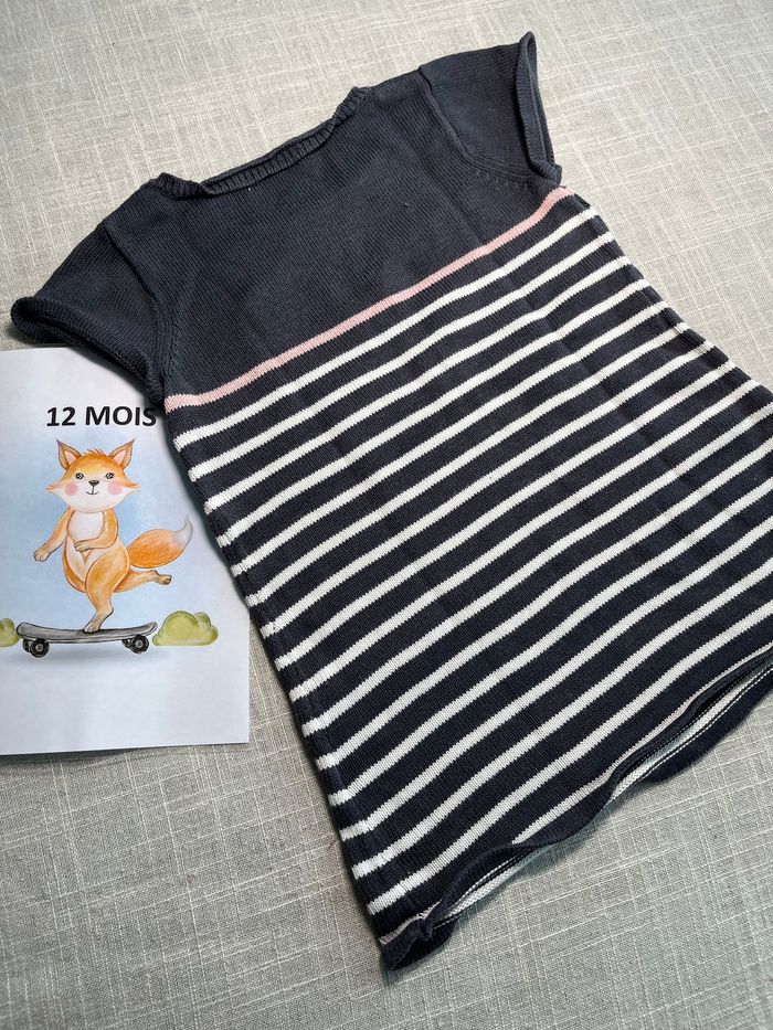 Jolie robe Vertbaudet à manches courtes et à rayures de type marinière Taille 12 mois Groupez vos achats pour profiter des remises activées sur les lots et réduire vos frais de port