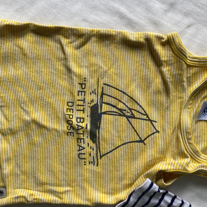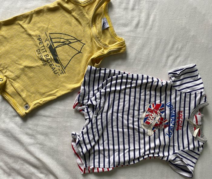 Lot de deux barboteuse 1 manches type Marcel marque petit bateau - bon état 1 manches courtes marinière marque Orchestra baby- très bon état