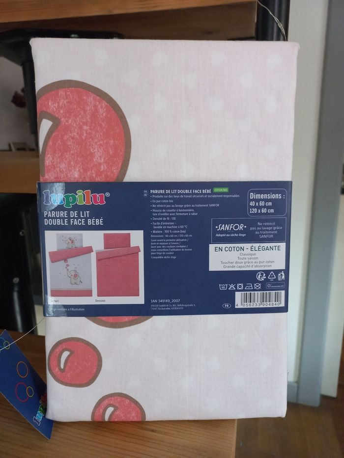 Parure de lit double face 120 x 60 100 % coton Neuve