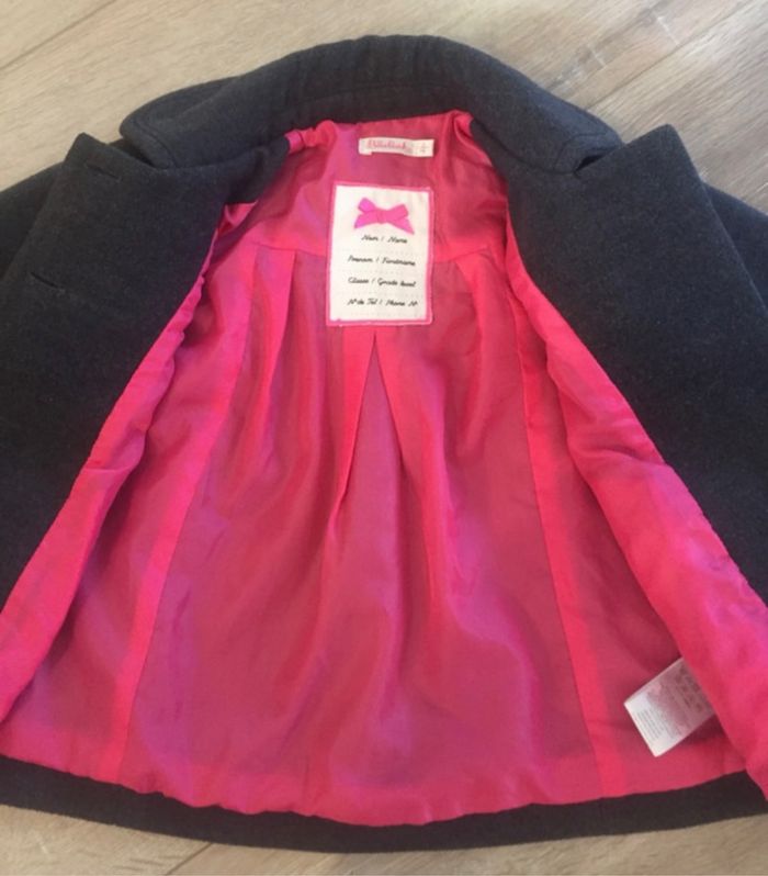 Très peu porté , en bon état. Doublure rose. Gris foncé Boutons à renforcer afin de ne pas les perdre.
