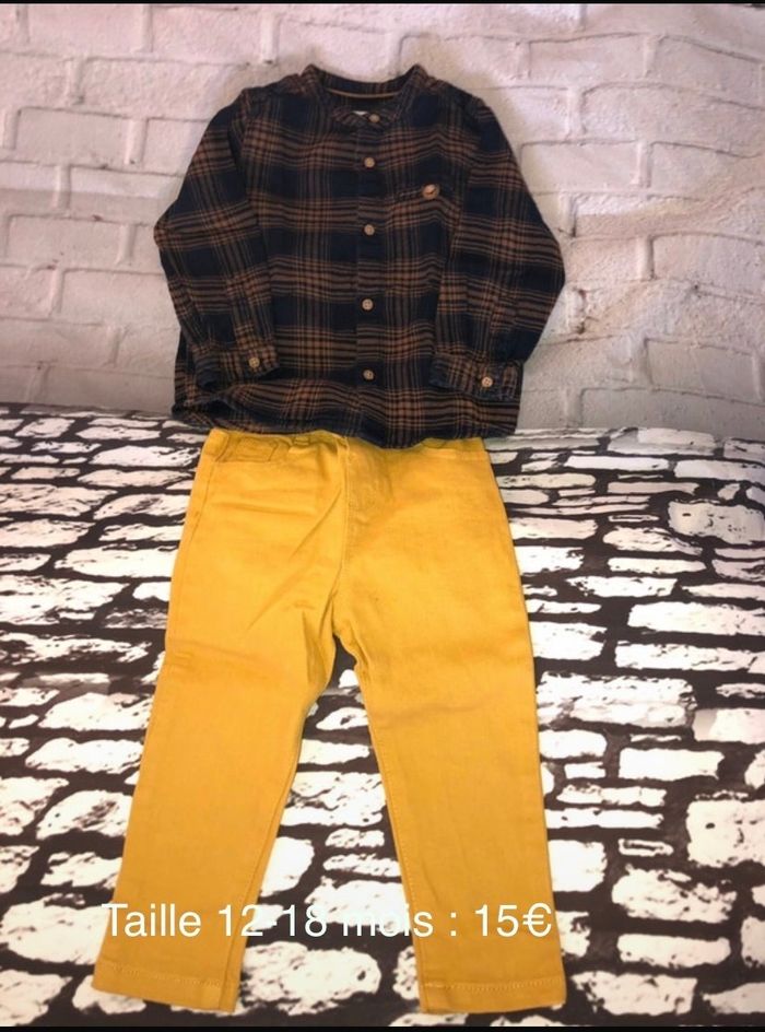 Jean moutarde + chemise bûcheron 12-18 mois.