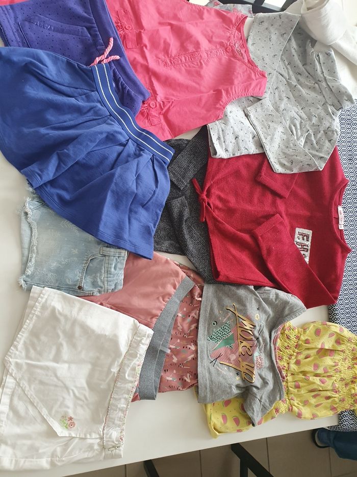 Lot 3 ans Comprend 1 combi short 1 tenu de sport 1 robe 1 pull fin 1 short en jeans 2 maillot longues manches 3 jupe dont a jupe short