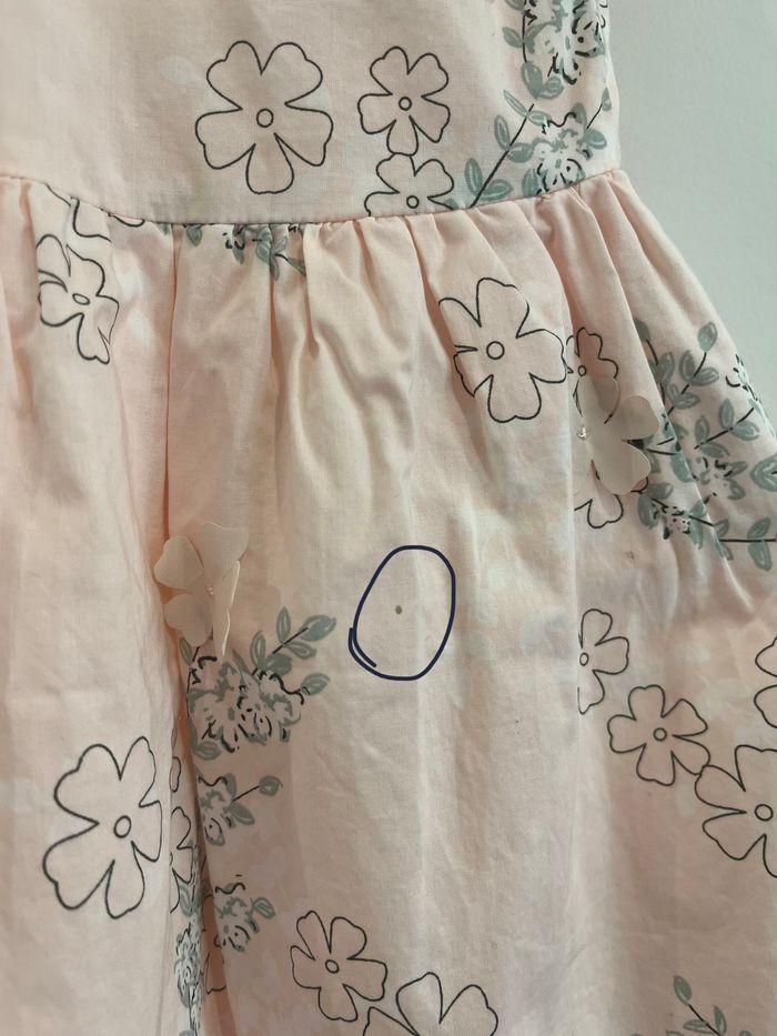 Très jolie robe rose pâle à motifs fleurs Le jupon est doublé avec du tulle Petite tâche discrète (photo 5) Vertbaudet - 6 ans
