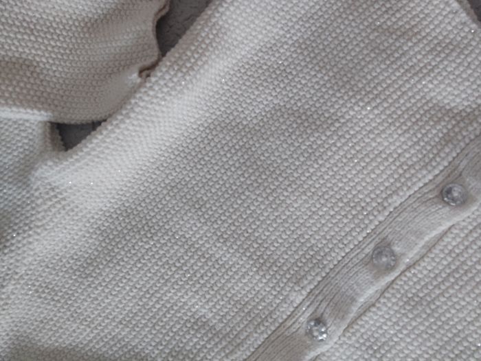 Gilet cardigan idéal mariage, baptême ou communion. Taille 18/24 mois (taille bien) Petit fil brillant argenté