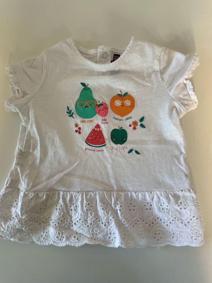 Tee shirt blanc manches courtes - 74cm - 12 mois