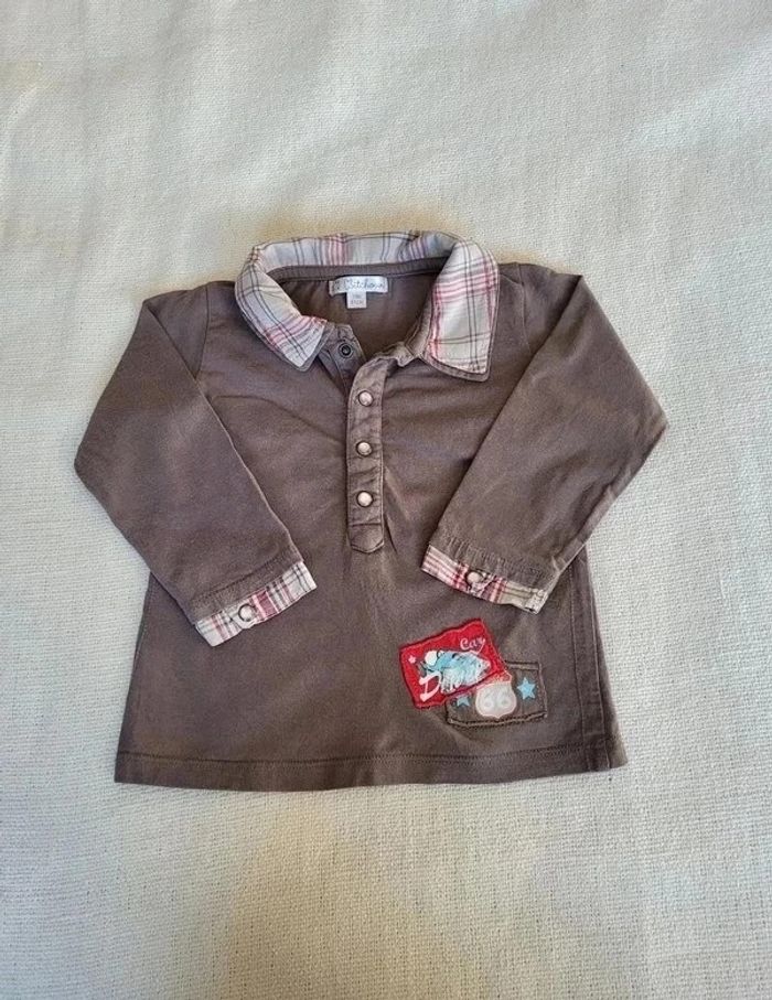 polo manches longues kitchoun 18 mois 81 cm marron en bon état