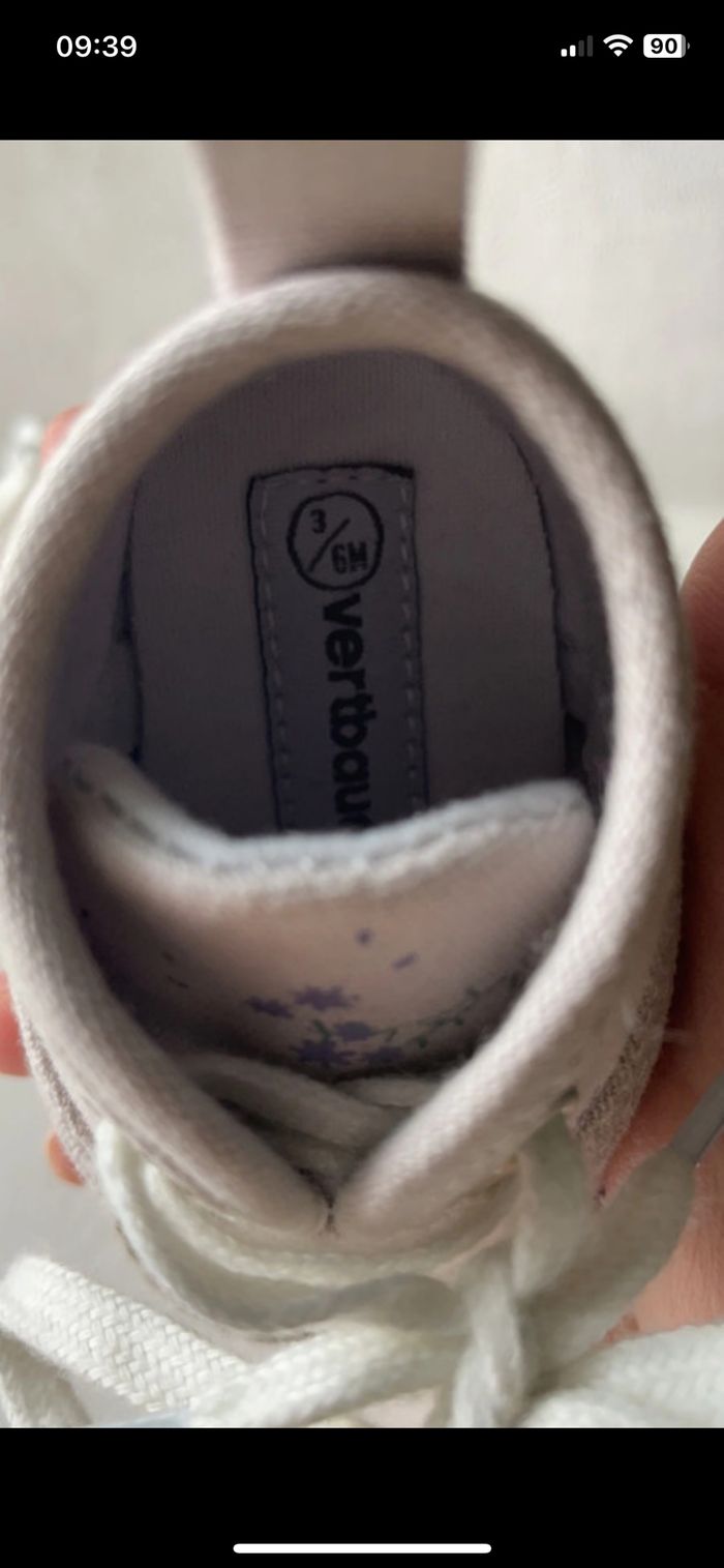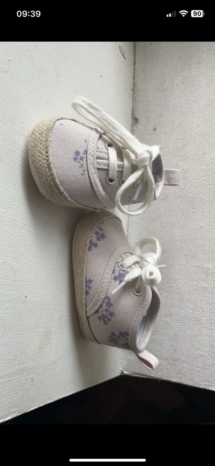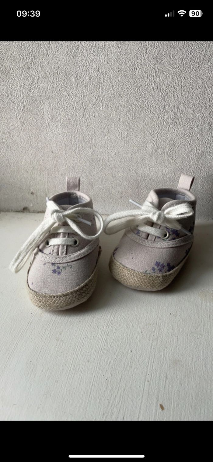 Petite chaussure fille en 3-6 mois équivalent à une taille 15-16 je pense Couleur violette pale à lacet marque verbaudet