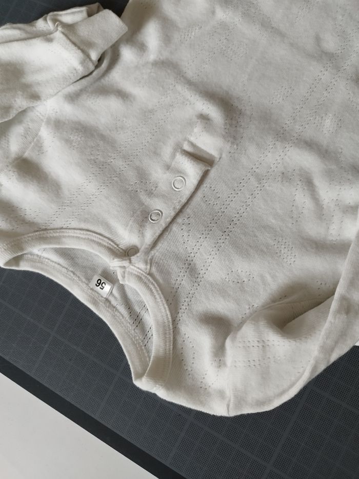 Bodie longues manches et jambes ! Couleur blanc, matière assez fine et agréable.