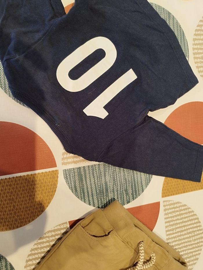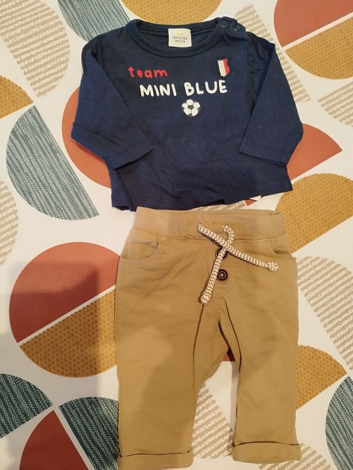 Ensemble tape a l'oeil, pantalon beige et petit haut bleu marine de foot ⚽