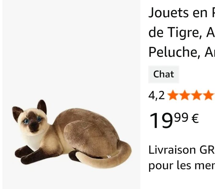 NEUF sans étiquette Peluche chaton siamois réaliste Je propose les livraisons Shop2Shop by Chronopost et Relais Colis, car Mondial Relay n'est pas fiable : Il arrive parfois que Mondial Relay ne livre pas au relais choisi lors de la commande, puis renvoie le colis à l'expéditeur. - 30% dès 25 articles achetés - 20% dès 15 articles achetés - 15% pour 10 articles achetés -10% pour 5 articles achetés - 5% pour l'achat de 2 articles. 1 lot/ 1 annonce compte pour 1 article. Pas de changement de prix autrement, pas la peine de faire d'offre, merci.