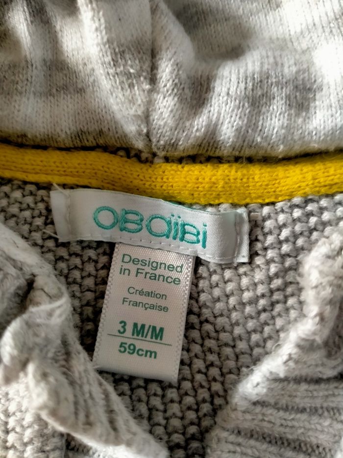 Gilet à capuche gris de la marque obaïbi. Taille 3 mois Excellent état
