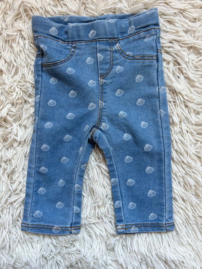 • jegging en jeans motif coquillages Taille réglable avec élastique Très bon état Taille 3 mois