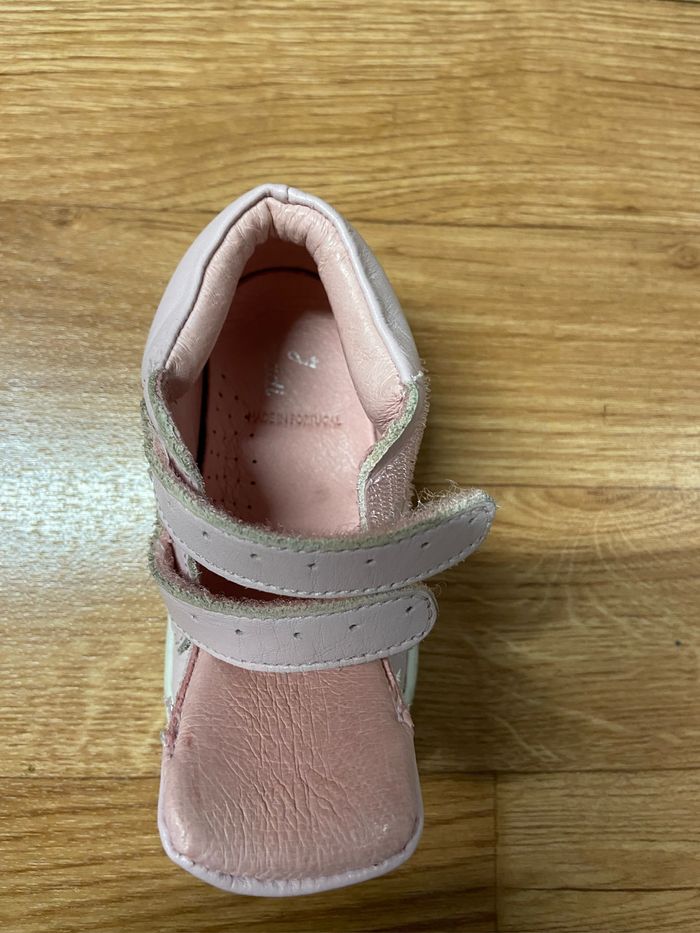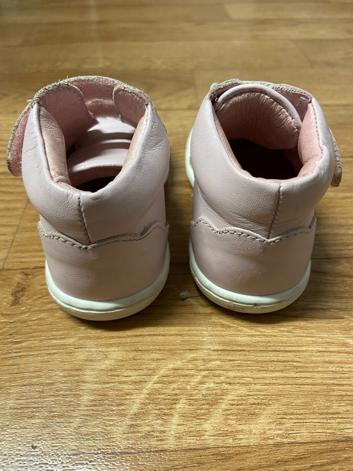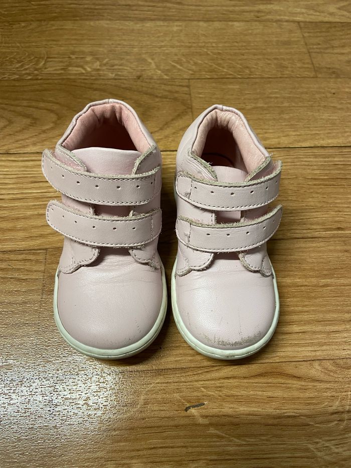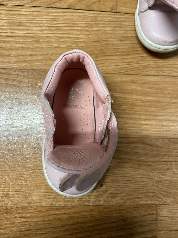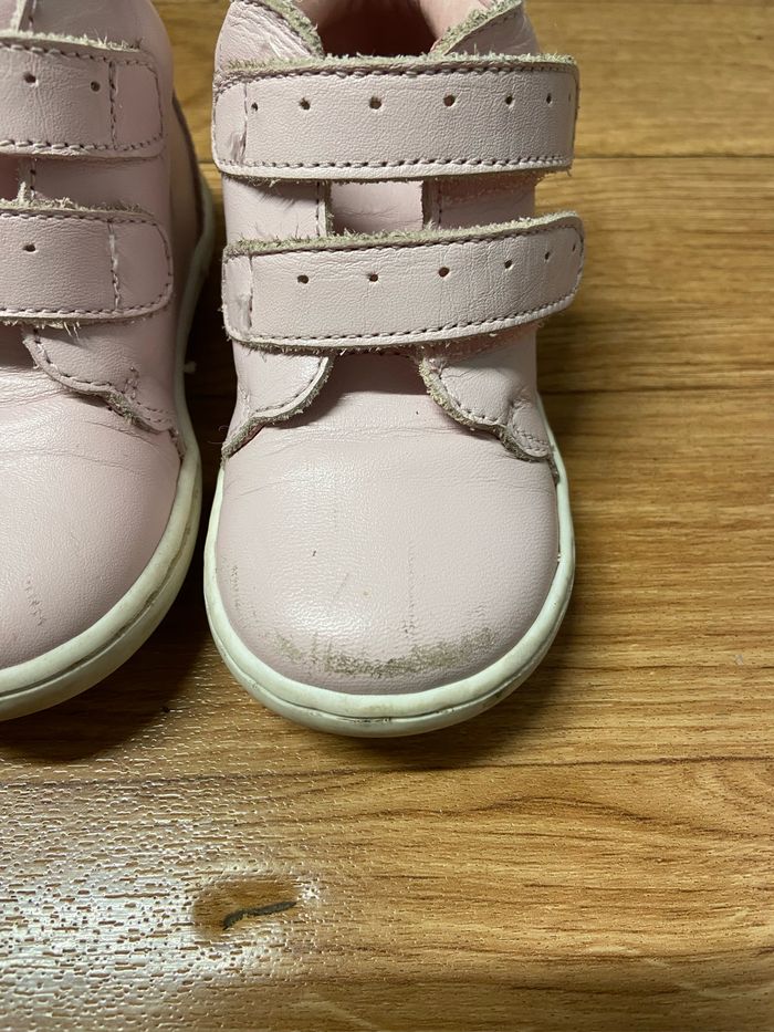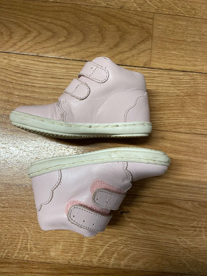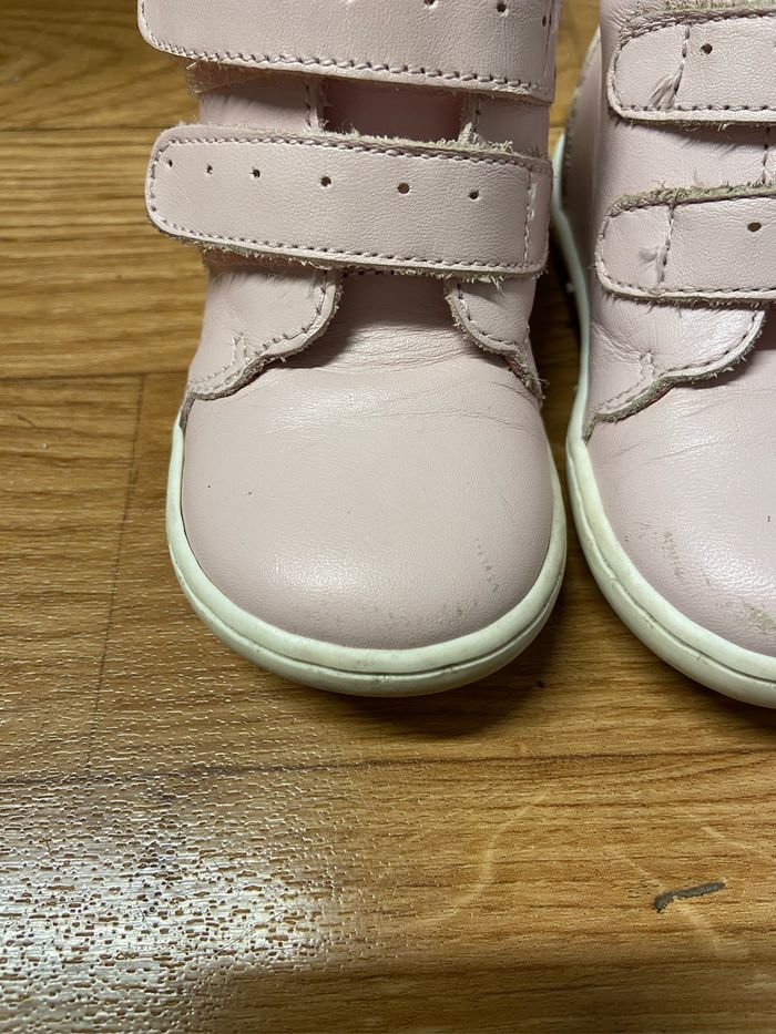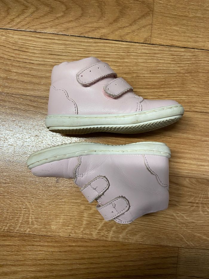 tennis montantes bébé fille cuir lisse rose poudré détails festonnés et semelle contrastée finalisent ces baskets faciles à enfiler grâce à leur ouverture à scratch.