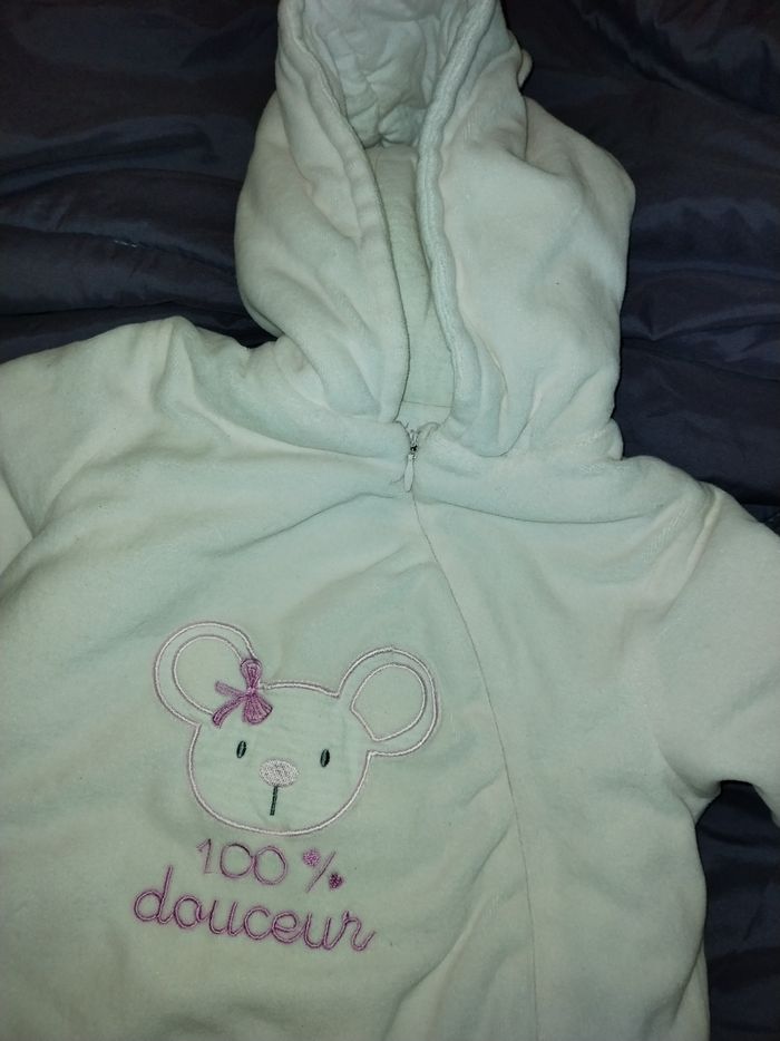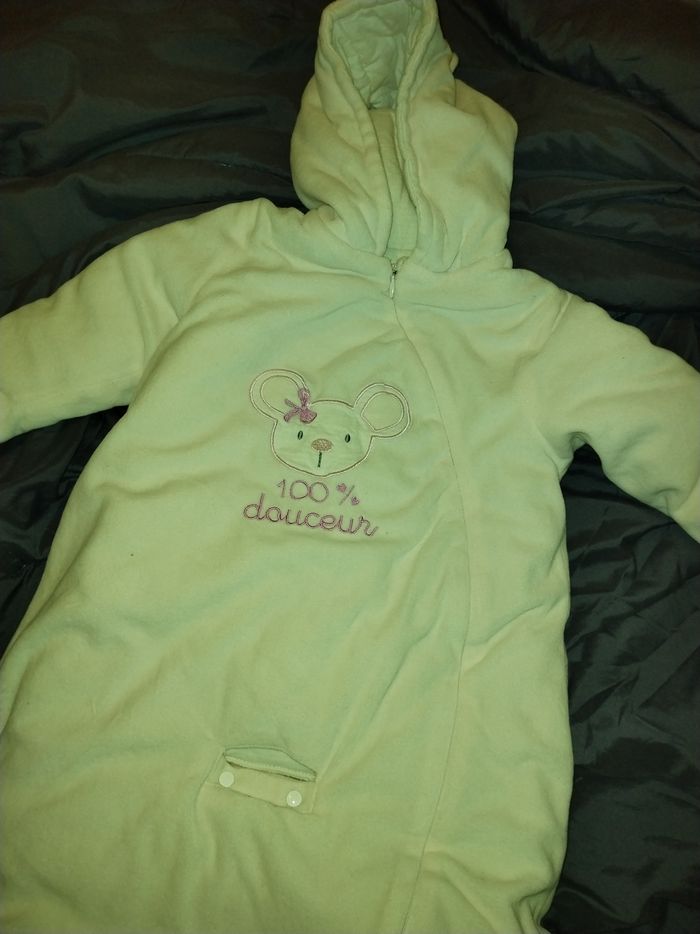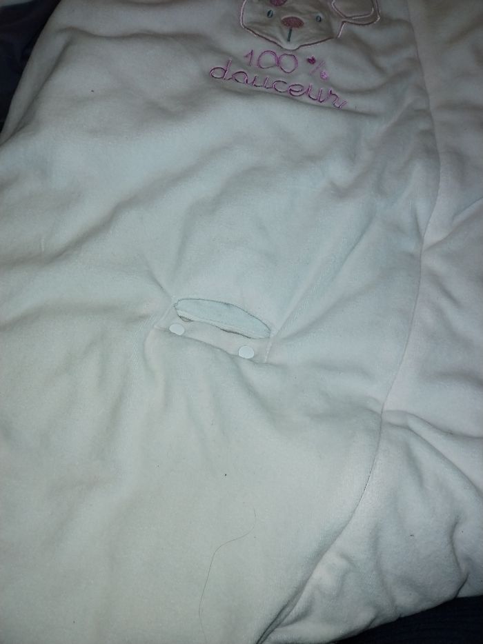 Nid d'ange jamais portée en très bon état, taille de 3 mois à 12mois facilement assez large et bien epais.