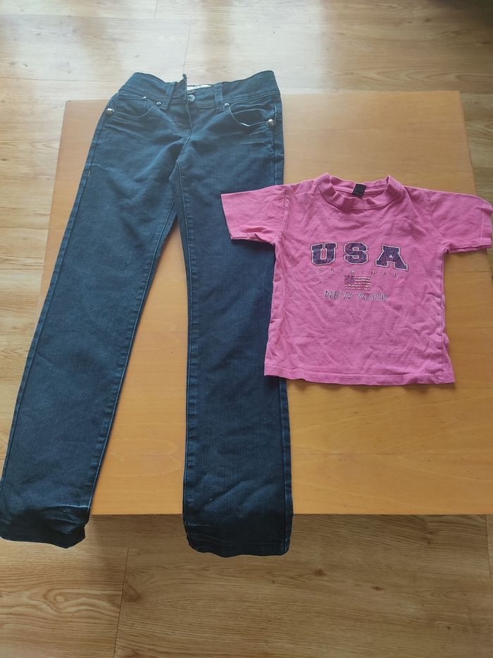 Pantalon jeans et tee-shirt fille 10/12 ans - photo numéro 1