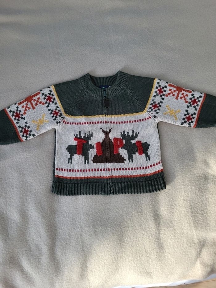 gilet zippé sergent major 18 mois vert, beige et rouge TIPI en très bon état