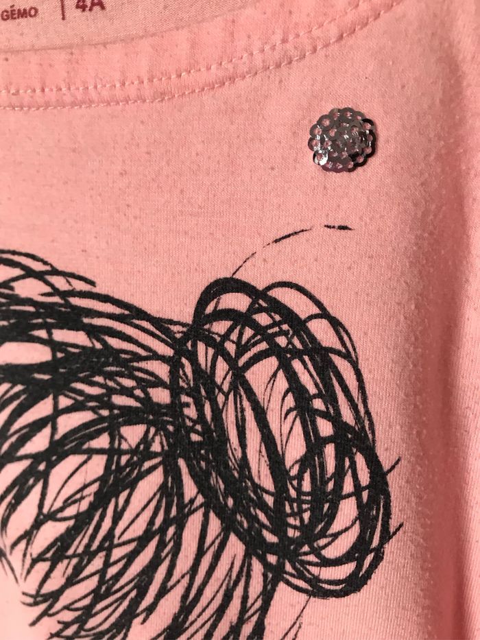 T-shirt rose corail  brodé sequins 4 ans Gémo