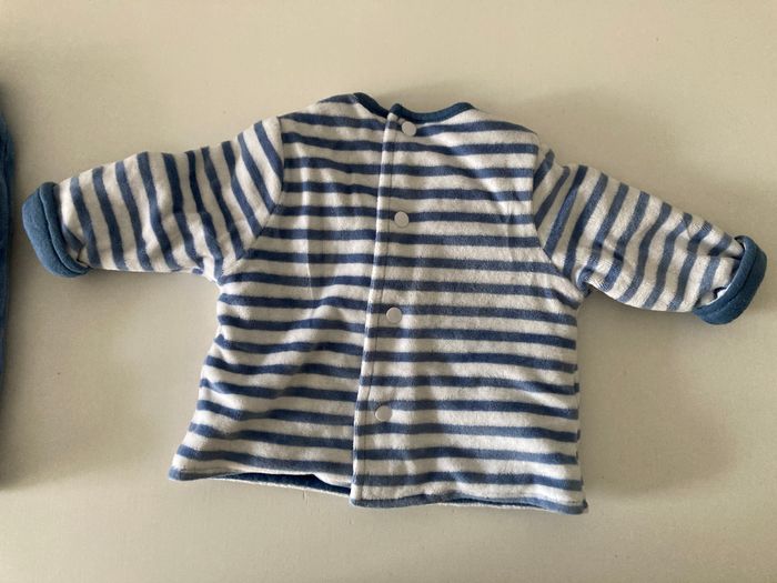 Pantalon et pull assortis Bien chaud car matelassé Le pull se ferme dans le dos avec des boutons pression