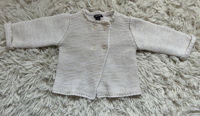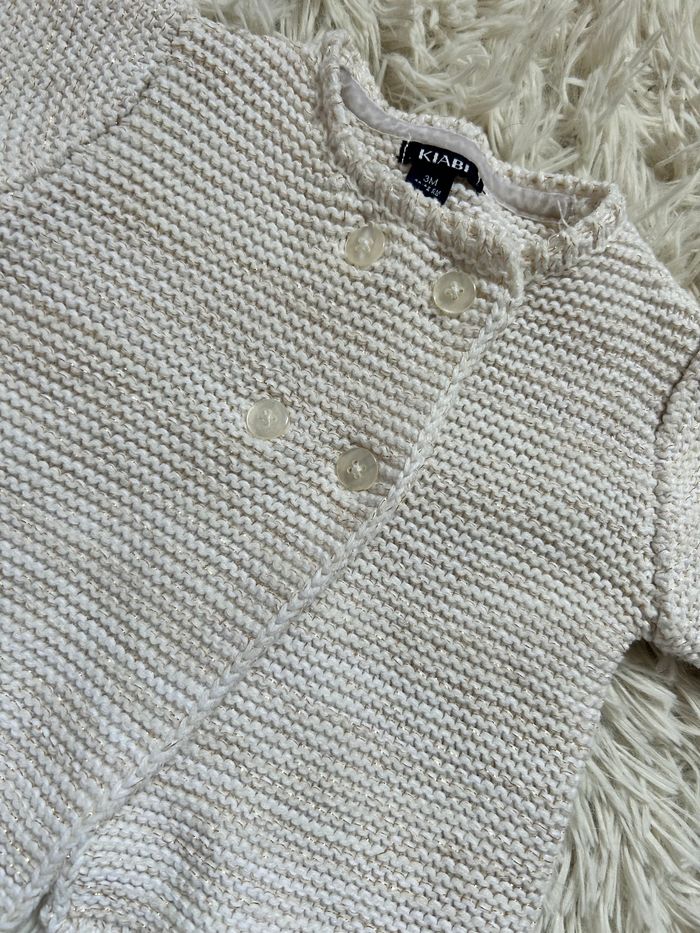 •Gilet grosse maille Beige/crème fil doré Taille 3 mois État neuf