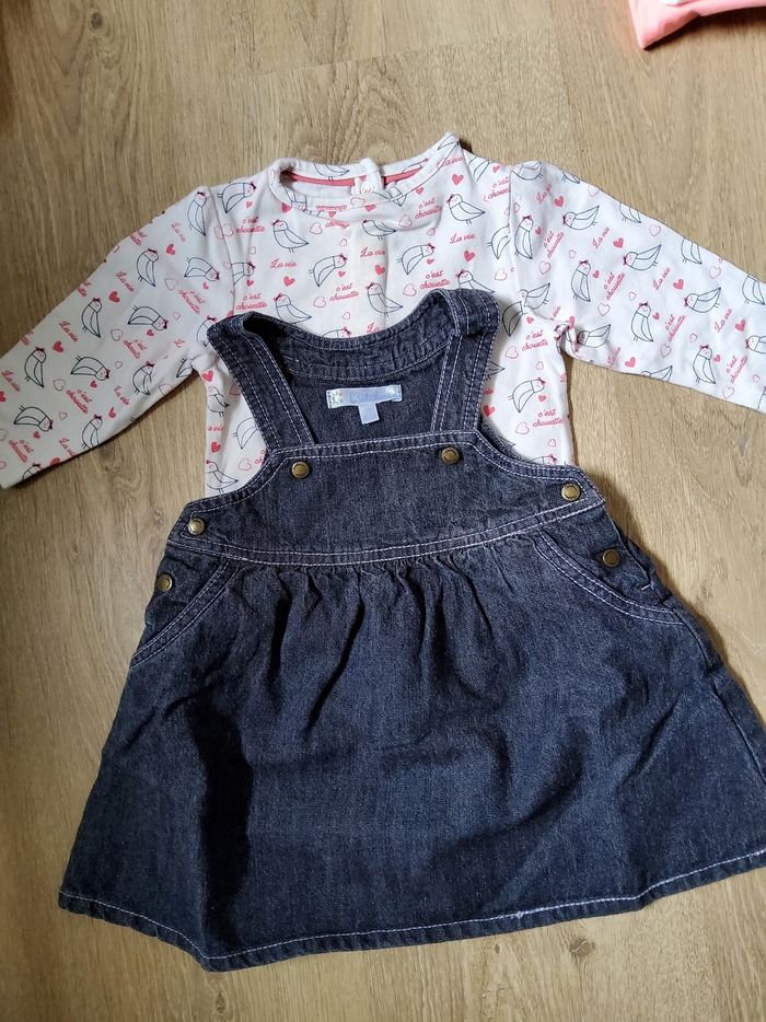 Ensemble robe en jean et t-shirt manches longues 3 mois