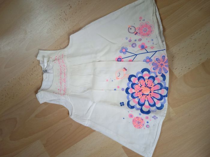 Robe fleurie avec des traces jaunâtres au niveau du col