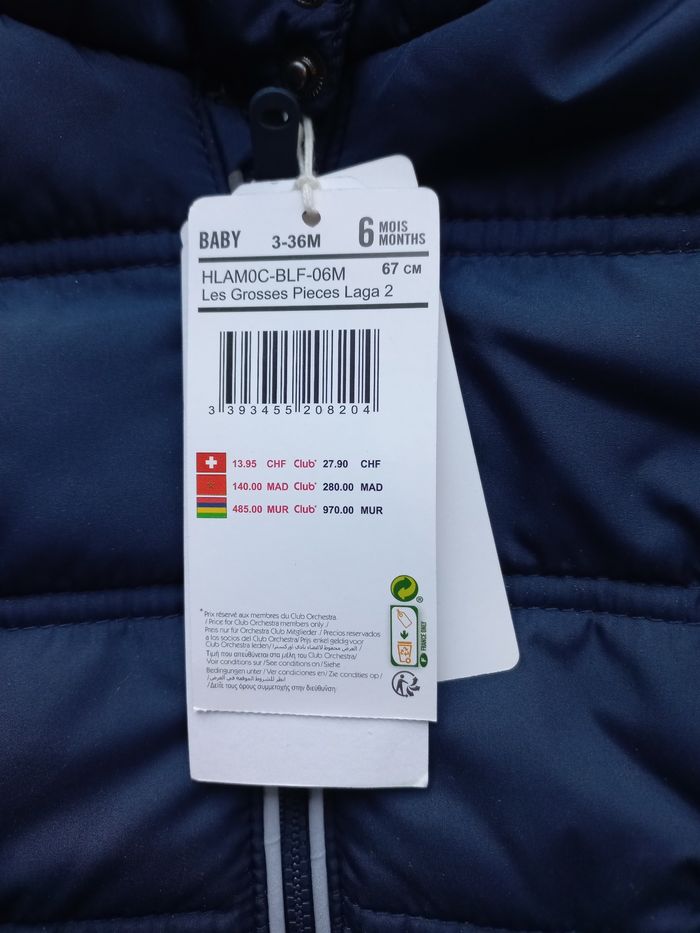 Doudoune bleue garçon 6 mois neuve Orchestra - photo numéro 2