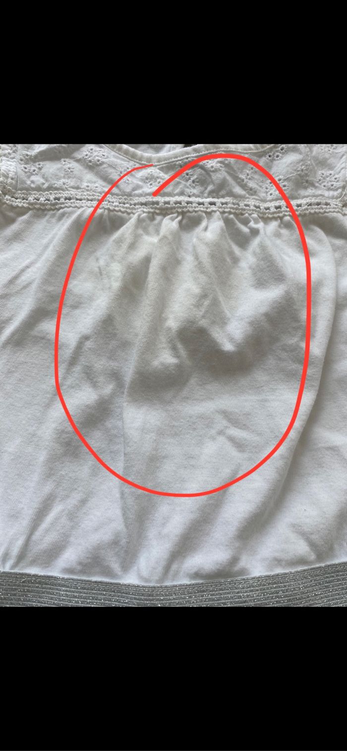 Peu porté, elle a jauni devant voir photo. Doit partir au détachant. Sinon très jolie. N’hésitez pas à me suivre car encore beaucoup de jouets, des vêtements fille, des chaussures en cuir, des chaussons… (du 1 mois au 8 ans), des vêtements garçon (du 1 au 12 mois pour le moment ). Maison non-fumeurs et sans animaux même si je les adore. Il n'y aura pas de poils ou d'odeur désagréable. Vous recherchez quelques choses, demandez moi. Je réponds très rapidement. Bon shopping 😊.