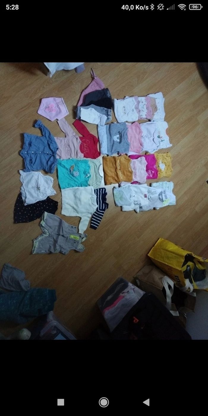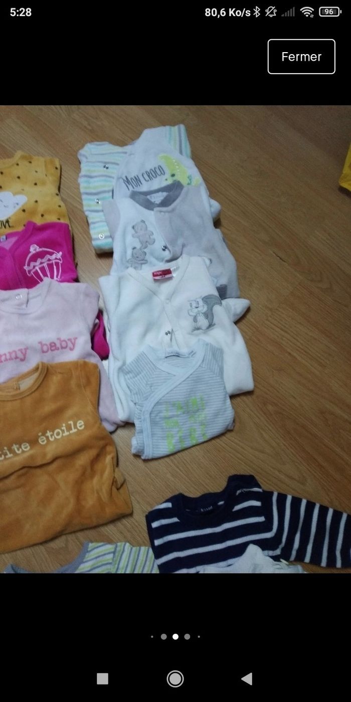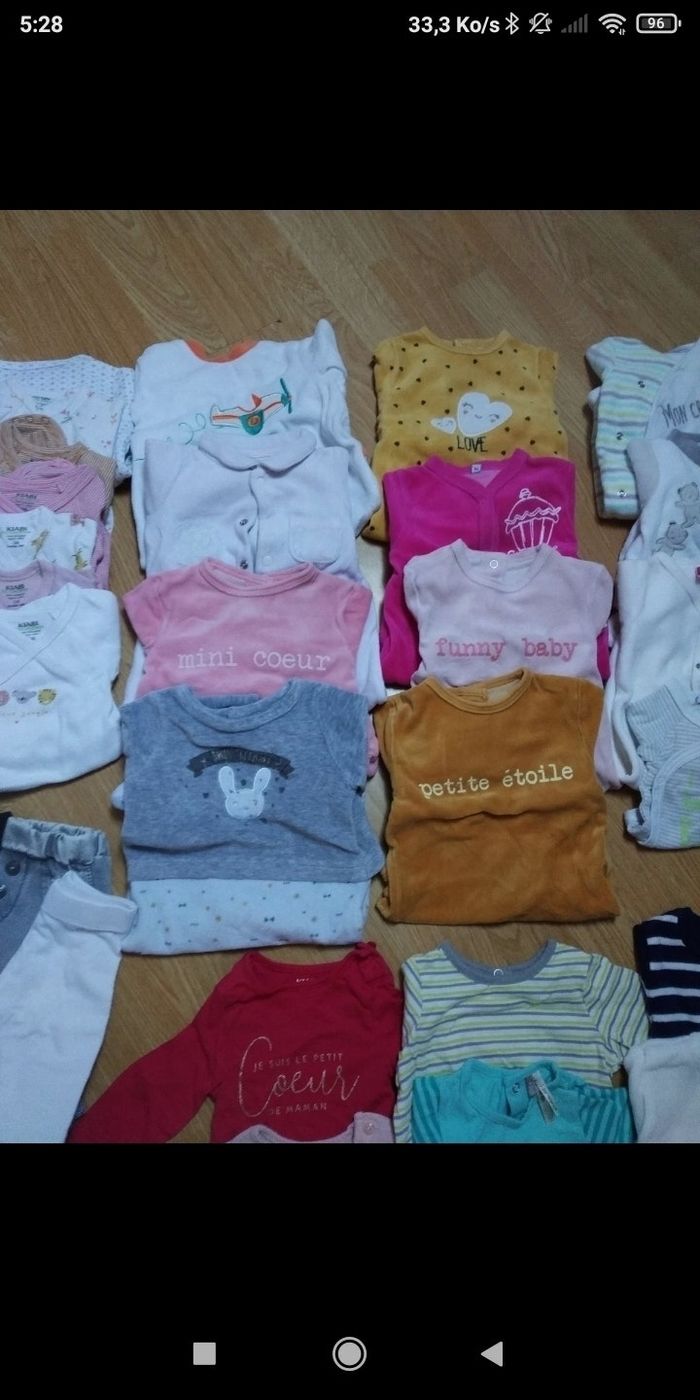 7 bodies manches longues 8 pijamas 3 pijamas naissance 1 bodie naissance 5 pantalons 4 tee-shirts manches longues 1 chemise 2 pulls 2 robes 1 salopette 2 bavoirs bandanas