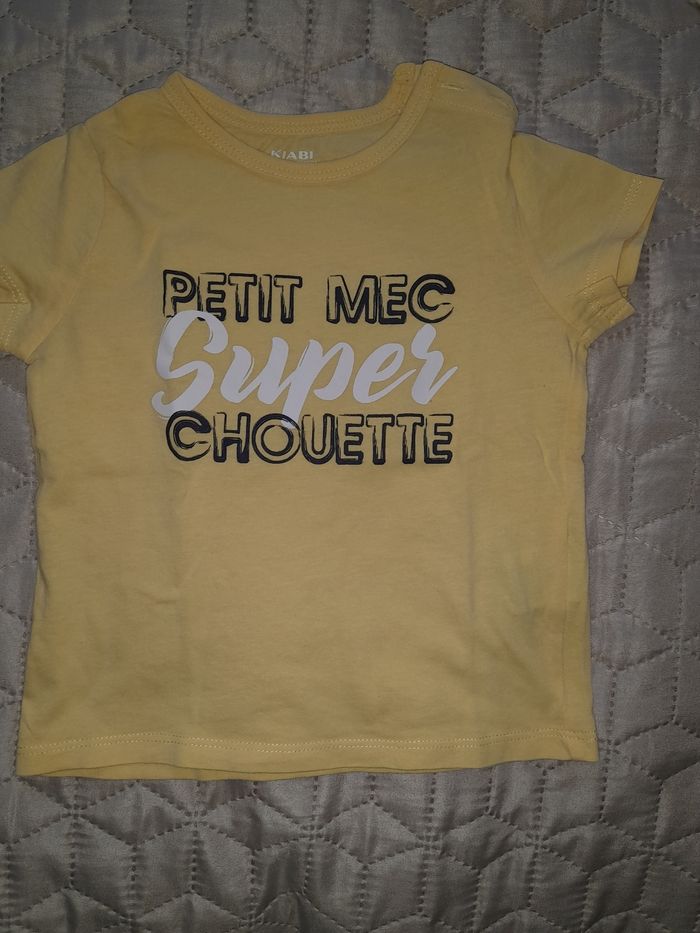 T-shirt kiabi taille 18 mois, en très bon état . Fermeture latérale épaule avec 2 boutons. 100% coton.